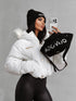Its slightly oversized, down-filled construction lends a modern touch to the silhouette, creating a fashionable and feminine look perfect for cooler days. The model fastens with a zipper and snaps embossed with the OLAVOGA logo , adding elegance and emphasizing the product's luxurious finish.